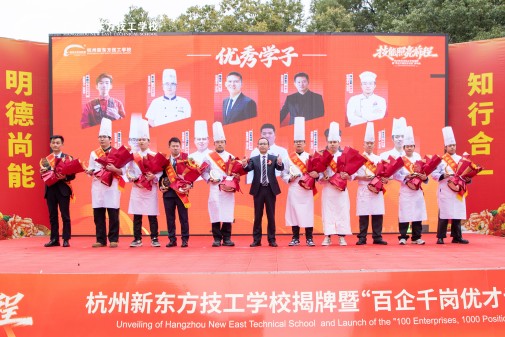 在杭州新东方技工学校揭牌暨“百企千岗”优才计划发布会的现场,优秀毕业生代表的身影格外亮眼。